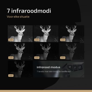 De ingebouwde IR-verlichting geeft je uitstekend zicht in volledige duisternis. De nachtkijker werkt met een speciale nachtmodus die zich aanpast aan uiteenlopende lichtomstandigheden, zodat je consistent heldere waarnemingen en opnames krijgt, zonder storende ruis.
