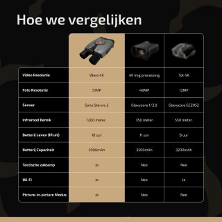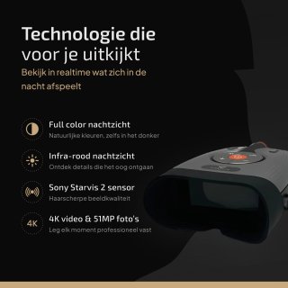 Leg je observaties vast in professionele kwaliteit: 51MP foto’s en 4K-video. Dankzij het ingebouwde display kun je direct terugkijken en in de meegeleverde app beelden draadloos overzetten naar je smartphone of tablet. Live meekijken en de nachtkijker op afstand bedienen is eenvoudig — ideaal voor samenwerkingen of veldwerk.
